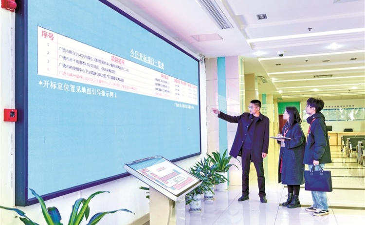 安徽省广德市纪委监委持续加大对工程建设招投标领域突出问题整治力度,推动以案促改促治,督促相关单位强化问题整改、堵塞制度漏洞。图为该市纪检监察干部在市公共资源交易服务中心了解情况。郑展鹏 摄