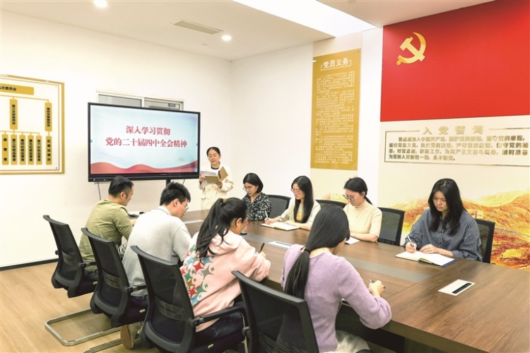 福建省福州市长乐区纪委监委积极创新学习形式,以“清风文研社”青年干部学习交流平台等为载体,引导纪检监察干部深入学习党的创新理论,增强党性修养,找准履职切入点和着力点。图为青年干部在“清风文研社”认真学习党的二十届四中全会精神。 郑嘉雯 摄