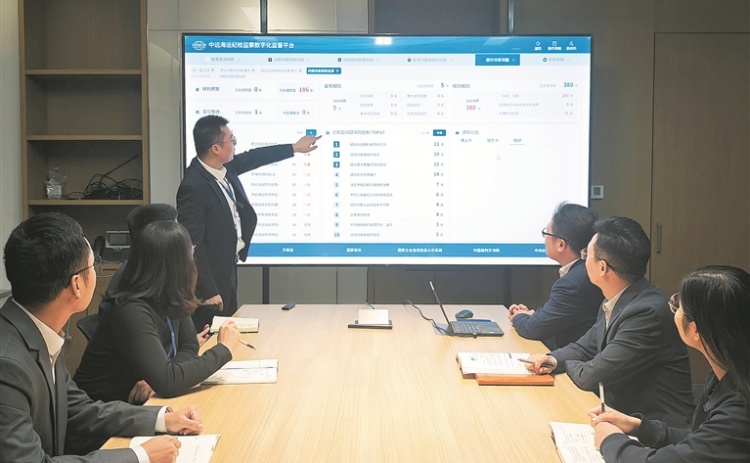 图为近日,中央纪委国家监委驻中国远洋海运纪检监察组干部利用数字化监督平台开展日常监督,对预警风险进行分析研判。 郭熠 摄