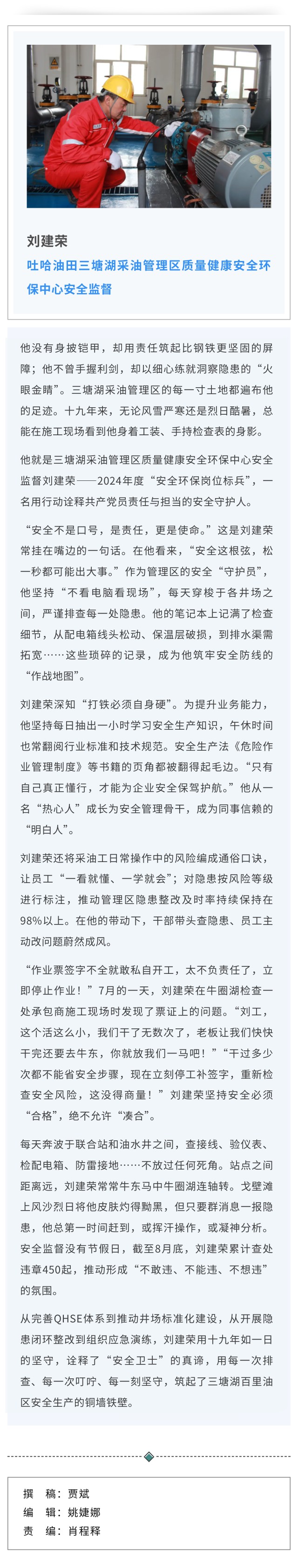 吐哈油田刘建荣:以责任为盾,守护油田安全线