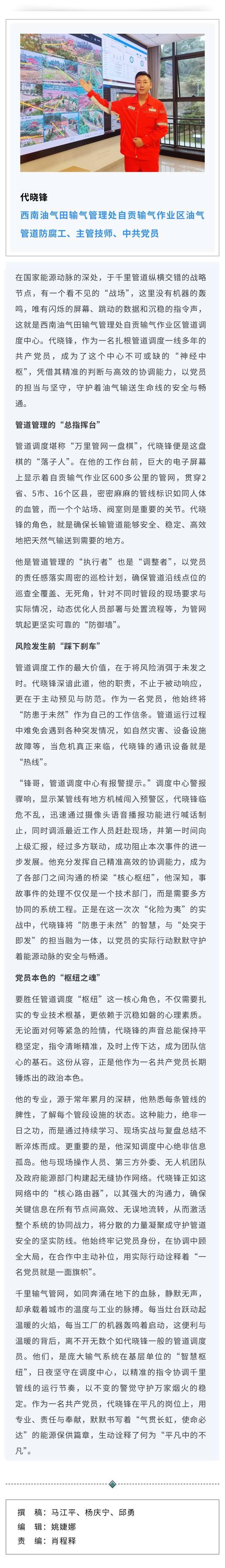 西南油气田代晓锋:管道调度中心的“枢纽”