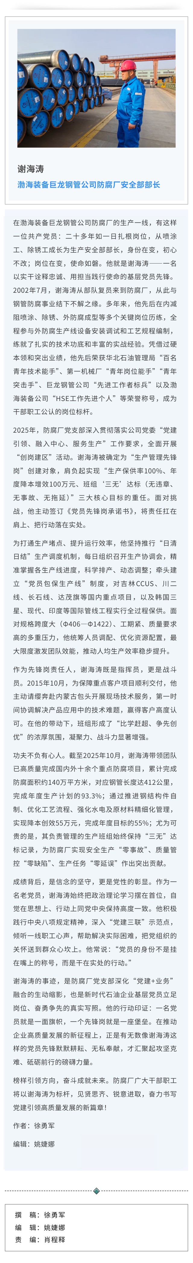 渤海装备谢海涛:党员先锋作表率 融入中心显担当